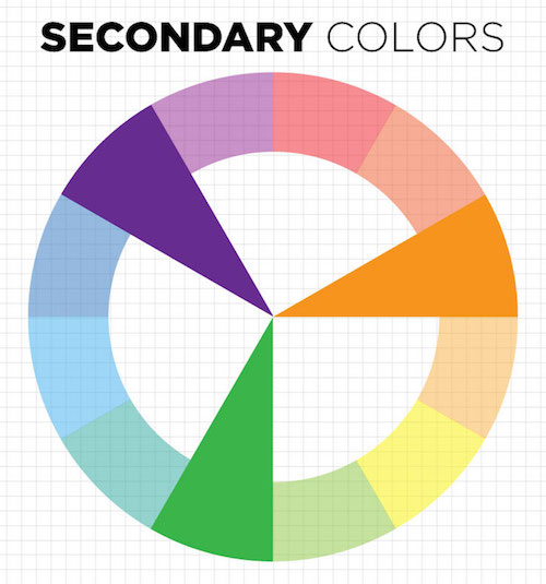Secondary colors are created by mixing equal parts of two primary colors together