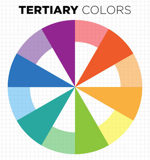 Tertiary colors are created by mixing a primary and secondary color together