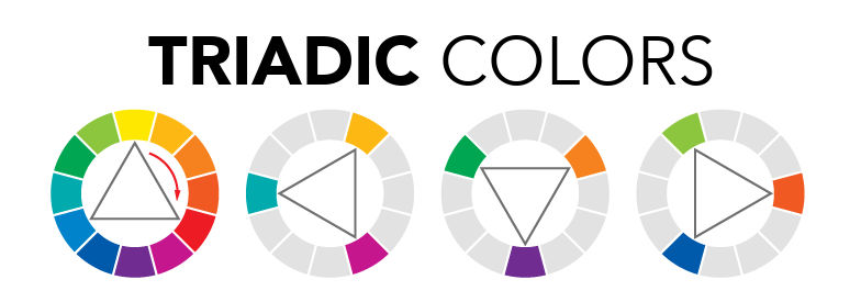 Triadic color schemes use three colors that are equally spaced apart they create bold and vibrant looks.